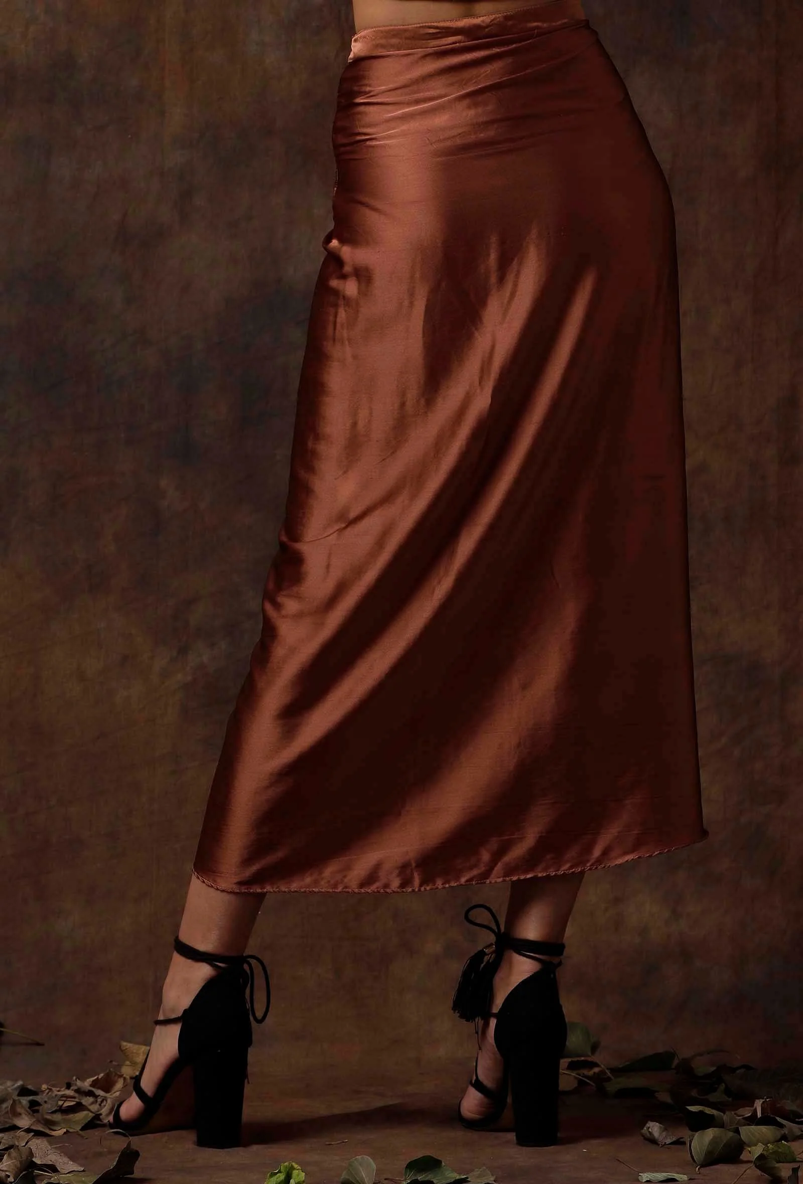 Russet Brown Overlap Stitched Skirt